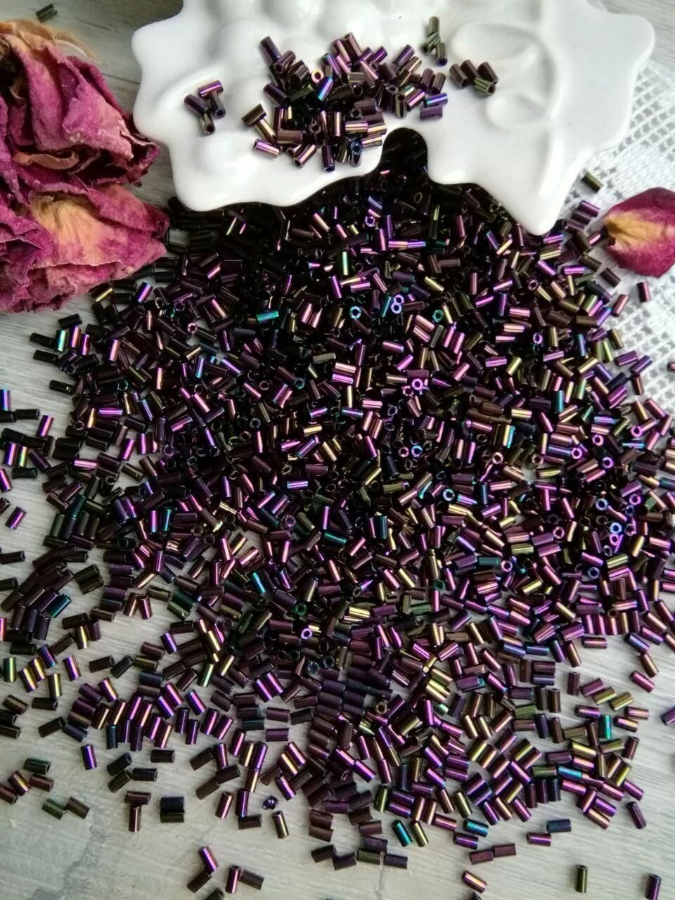 Бисер японский Toho bugle, стеклярус фиолетовый ирис №85, 3 мм, 10 грамм интересное: