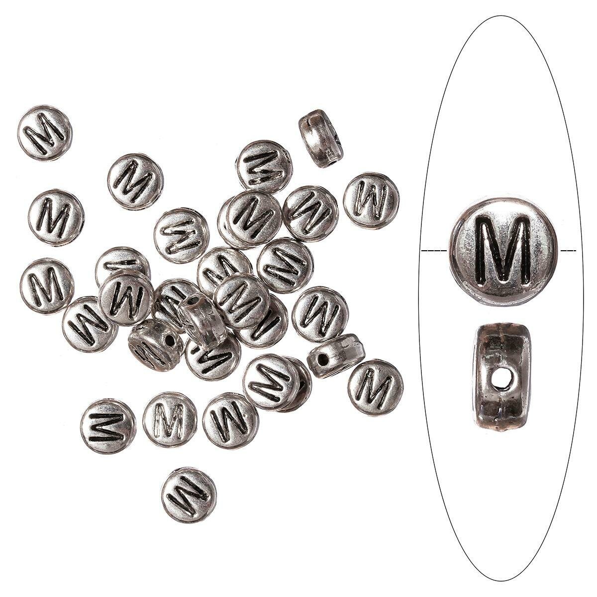 Купить Бусина металлическая, 7х4мм, буква M, базовый материал - цинковый сплав, серебристая с чернением, 10 шт.