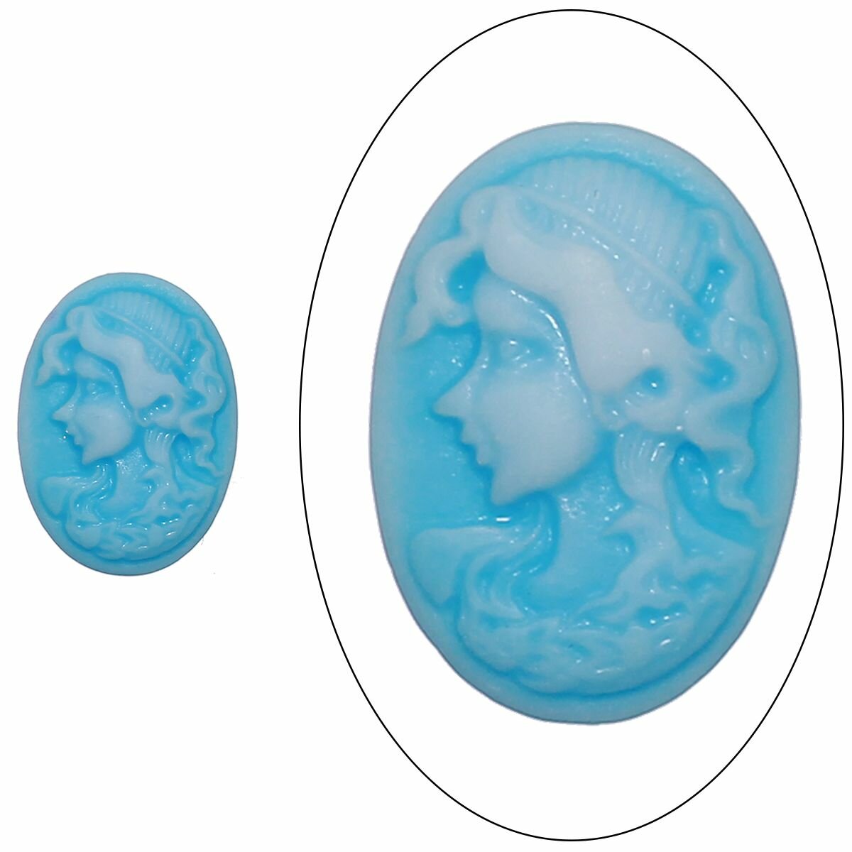Камея акриловая, 24х18мм, девушка в ободке, белая на голубом, 5 шт. интересное: