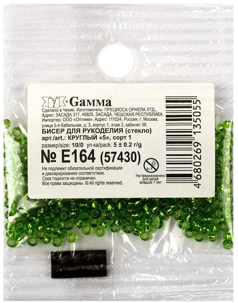 Бисер Чехия "GAMMA" круглый "1" 10/0 5гр (A036 салатовый) 4332427