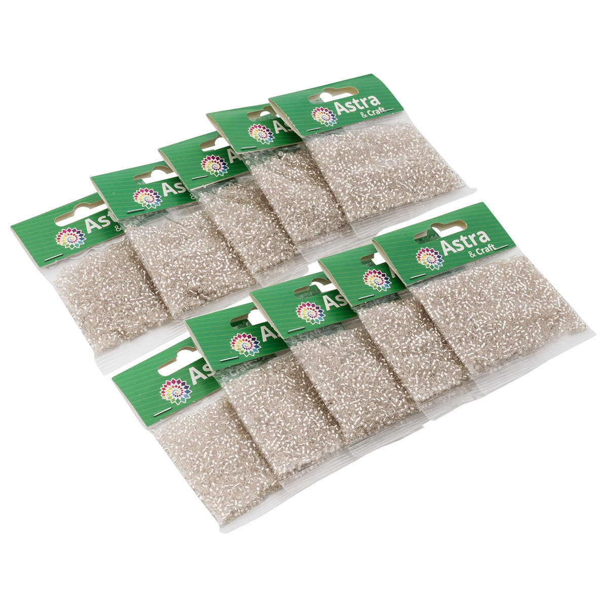 Бисер для плетения 11/0, 20г*10 упак, стекло, Astra&Craft (39А бежевый, прозрачный с серебристым центром)