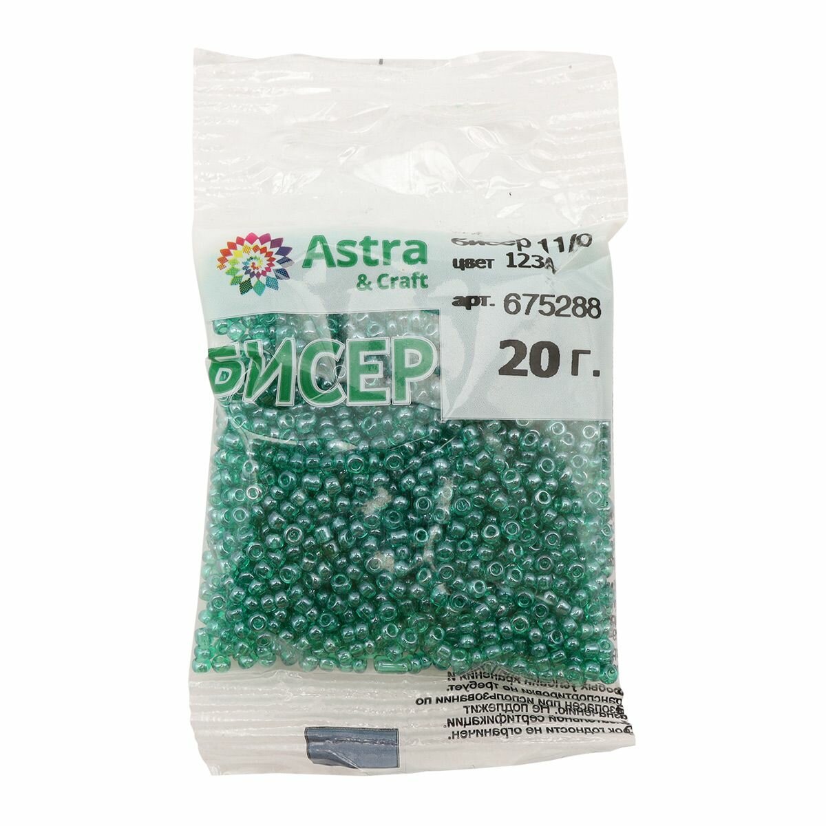 Бисер для плетения 11/0, 20г*10 упак, стекло, Astra&Craft (107В зеленый, прозрачный, глянцевый)