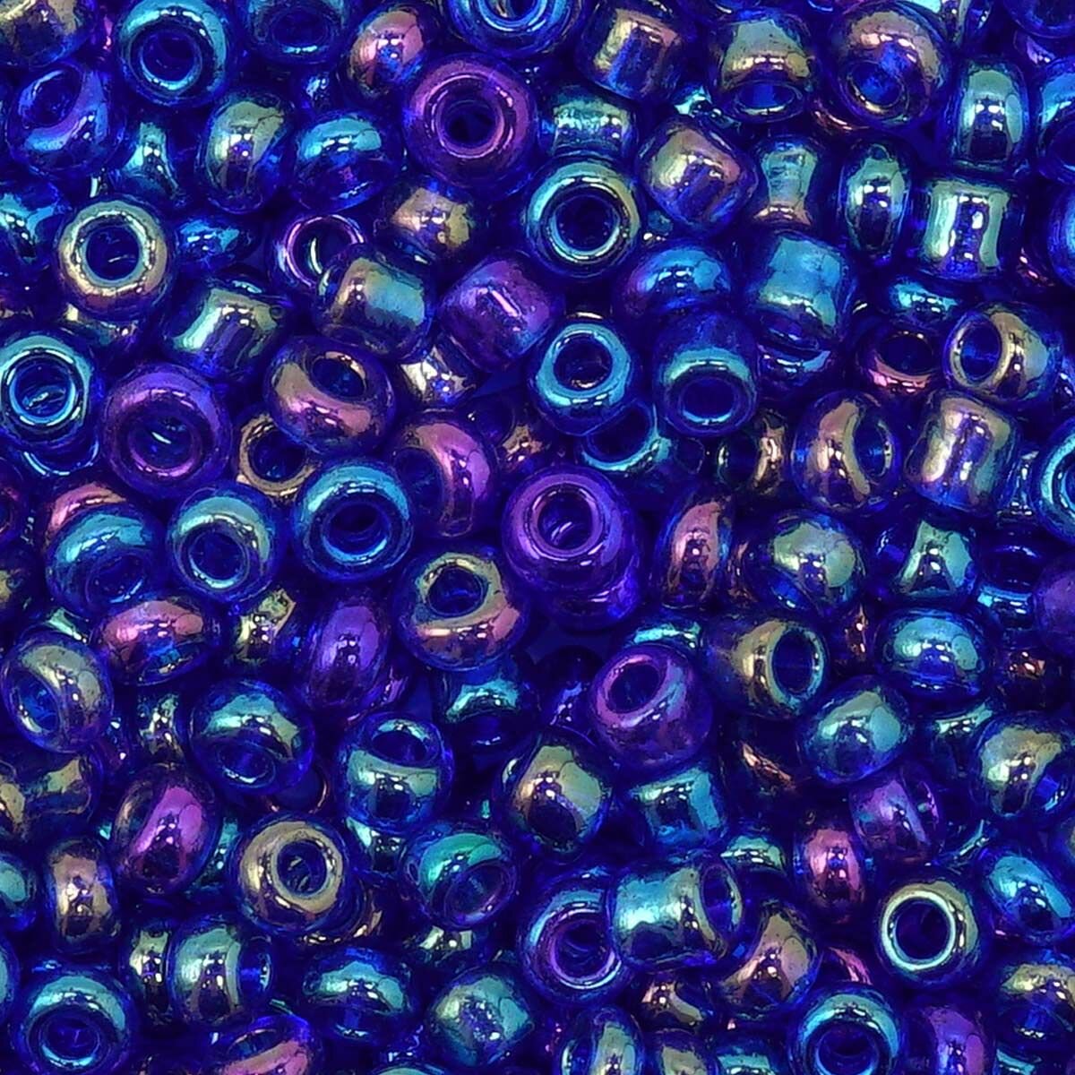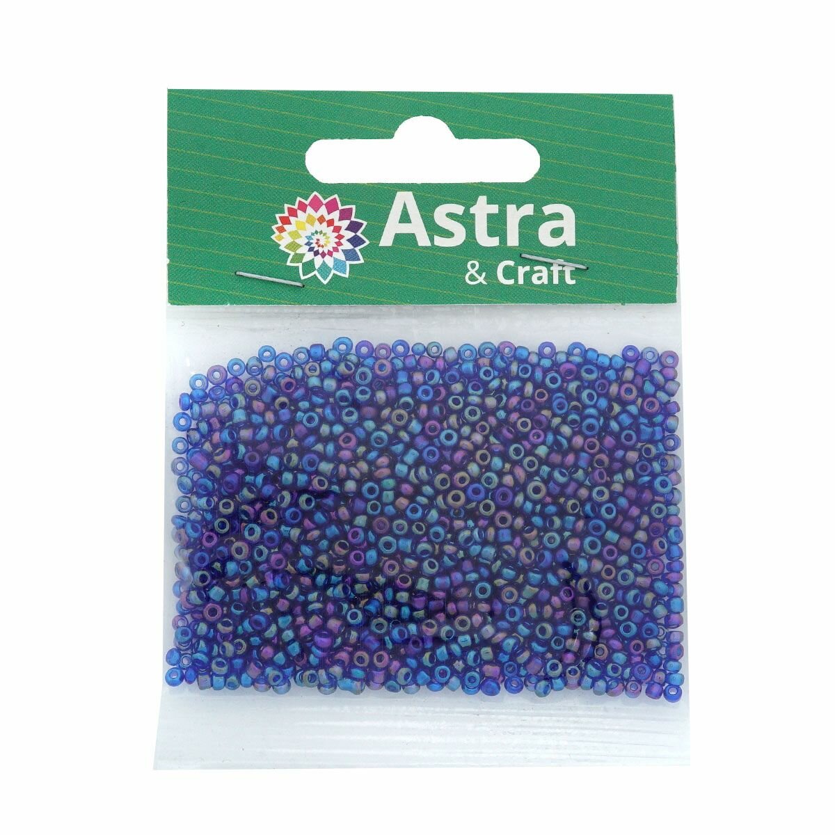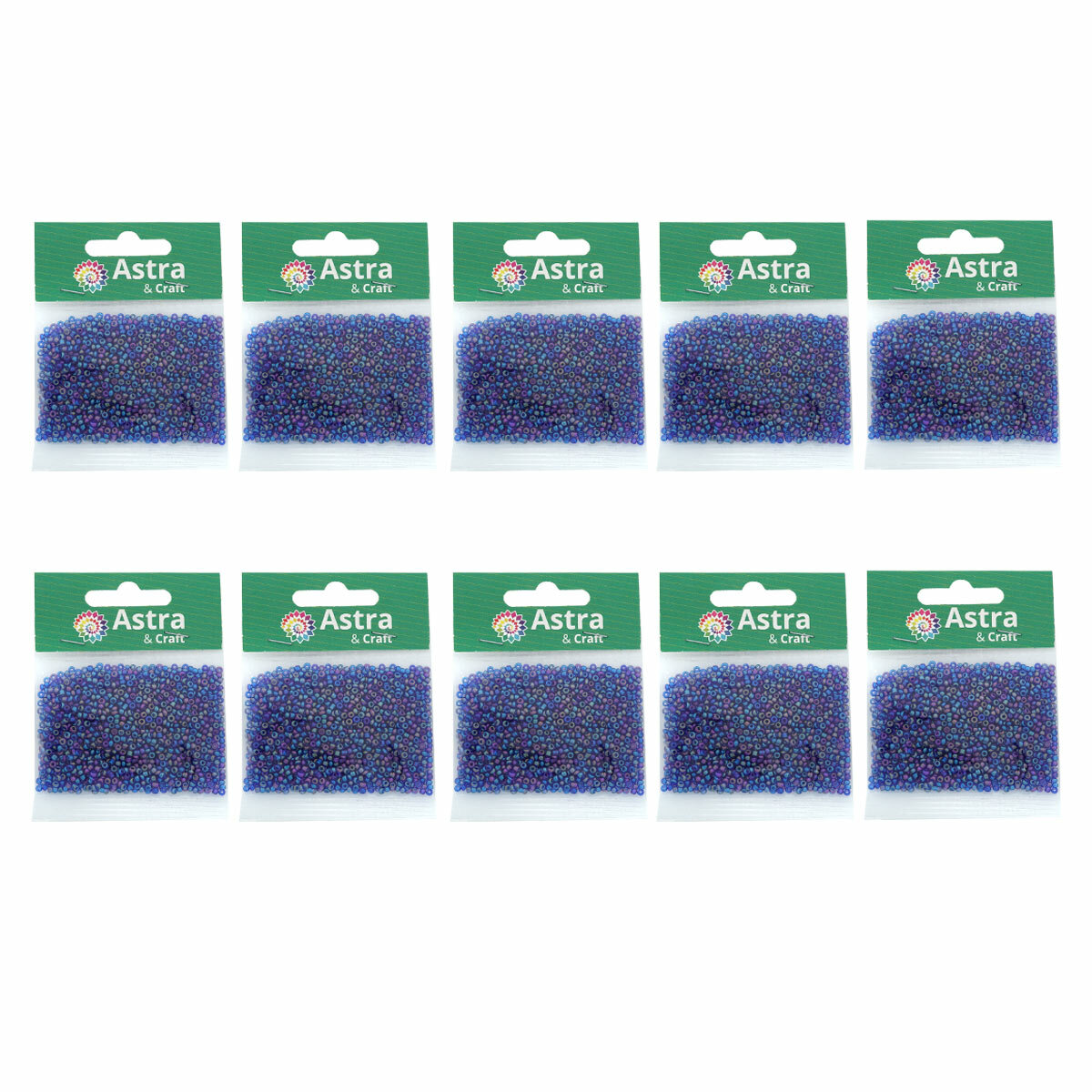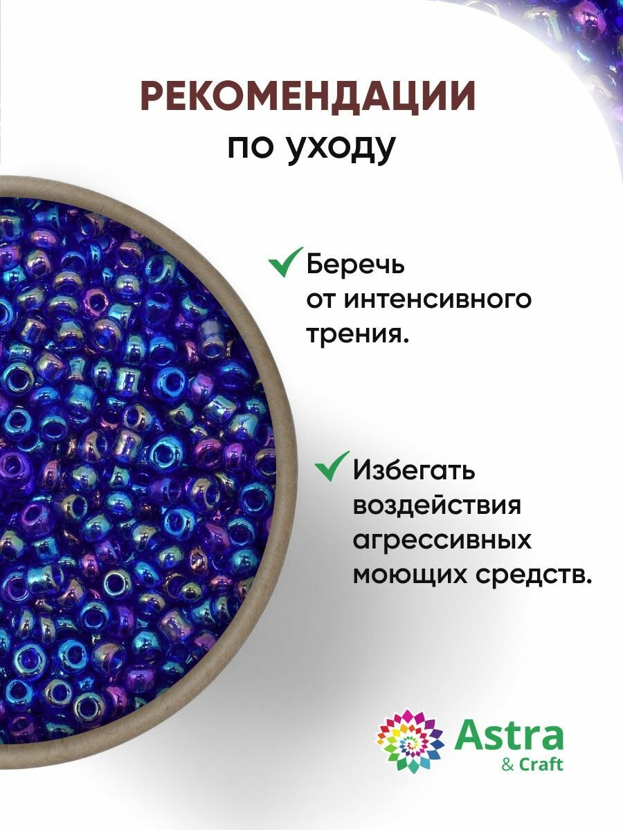 Бисер для плетения 11/0, 20г*10 упак, стекло, Astra&Craft (168B синий, прозрачный, радужный)