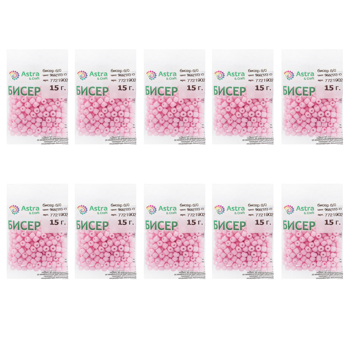 Бисер для плетения 11/0, 20г*10 упак, стекло, Astra&Craft (966 (55) светло-розовый, непрозрачный)