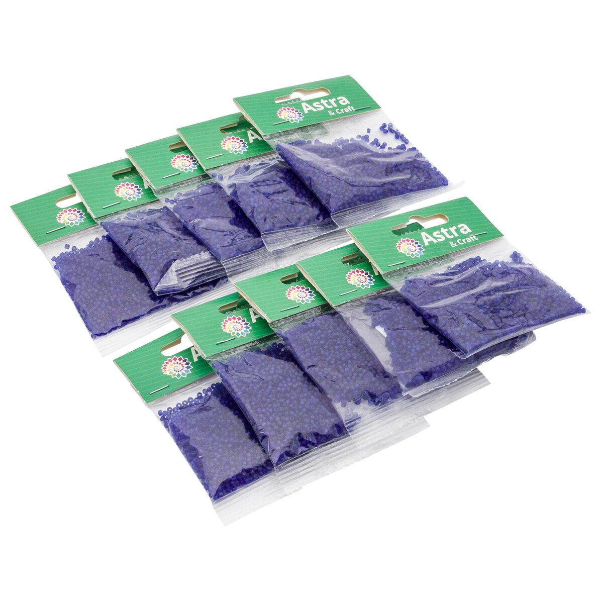 Бисер для плетения 11/0, 20г*10 упак, стекло, Astra&Craft (8 синий, прозрачный)