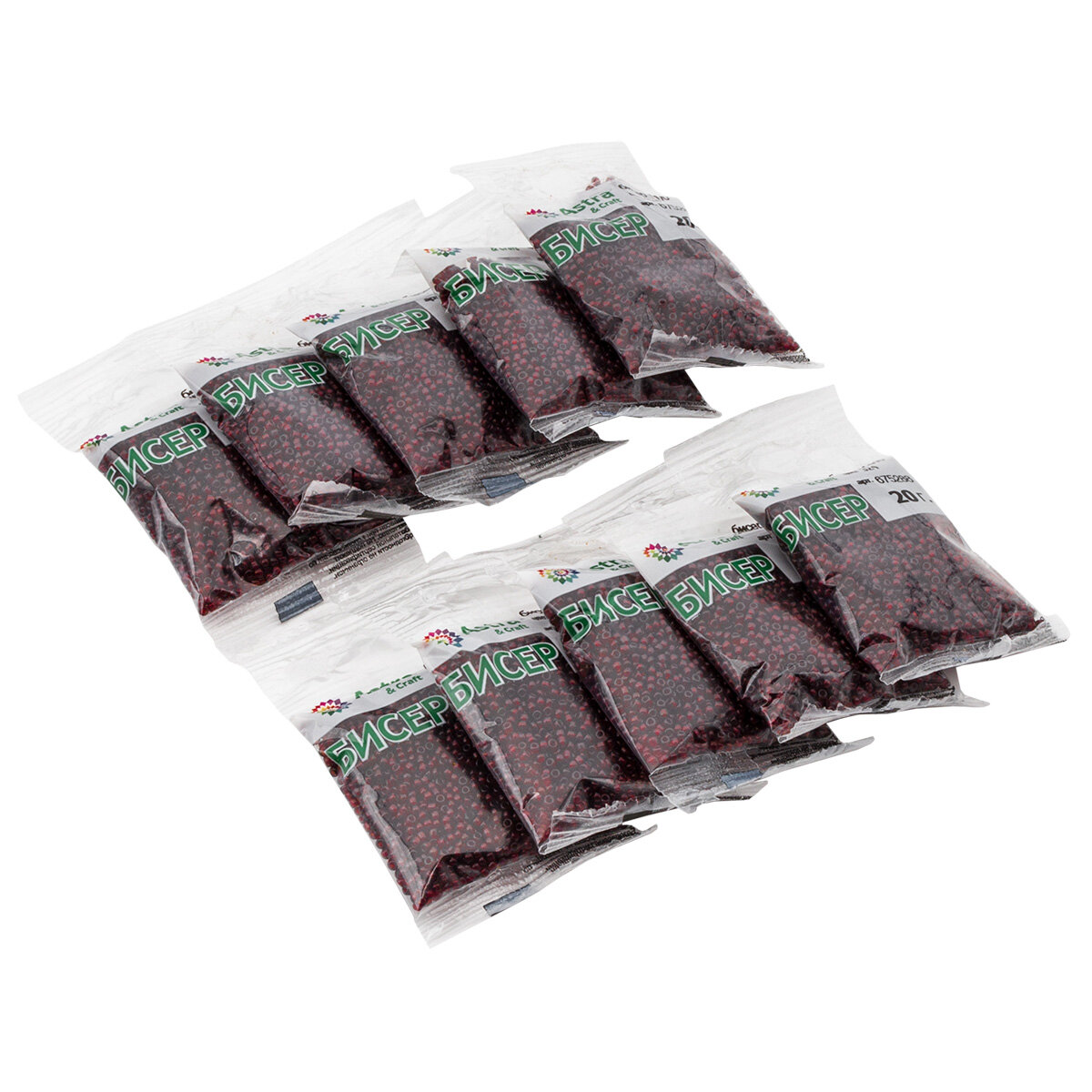 Бисер для плетения 11/0, 20г*10 упак, стекло, Astra&Craft (125B бордовый, непрозрачный глянцевый)