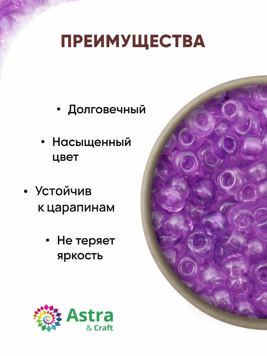 Бисер для плетения 11/0, 20г*10 упак, стекло, Astra&Craft (111А фиолетовый, прозрачный, глянцевый)