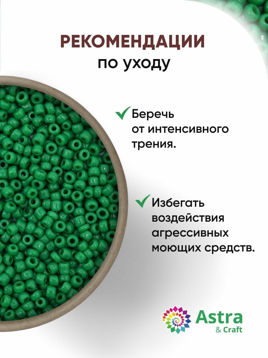 Бисер для плетения 11/0, 20г*10 упак, стекло, Astra&Craft (107В зеленый, прозрачный, глянцевый)