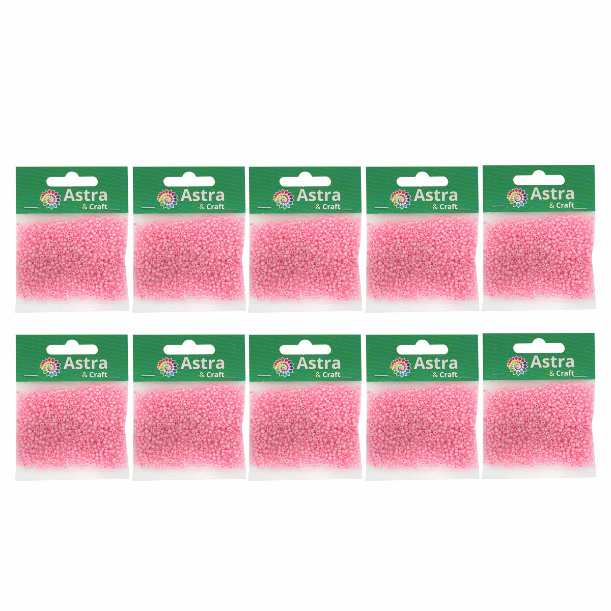 Бисер для плетения 11/0, 20г*10 упак, стекло, Astra&Craft (1110 розовый, глянцевое покрытие)