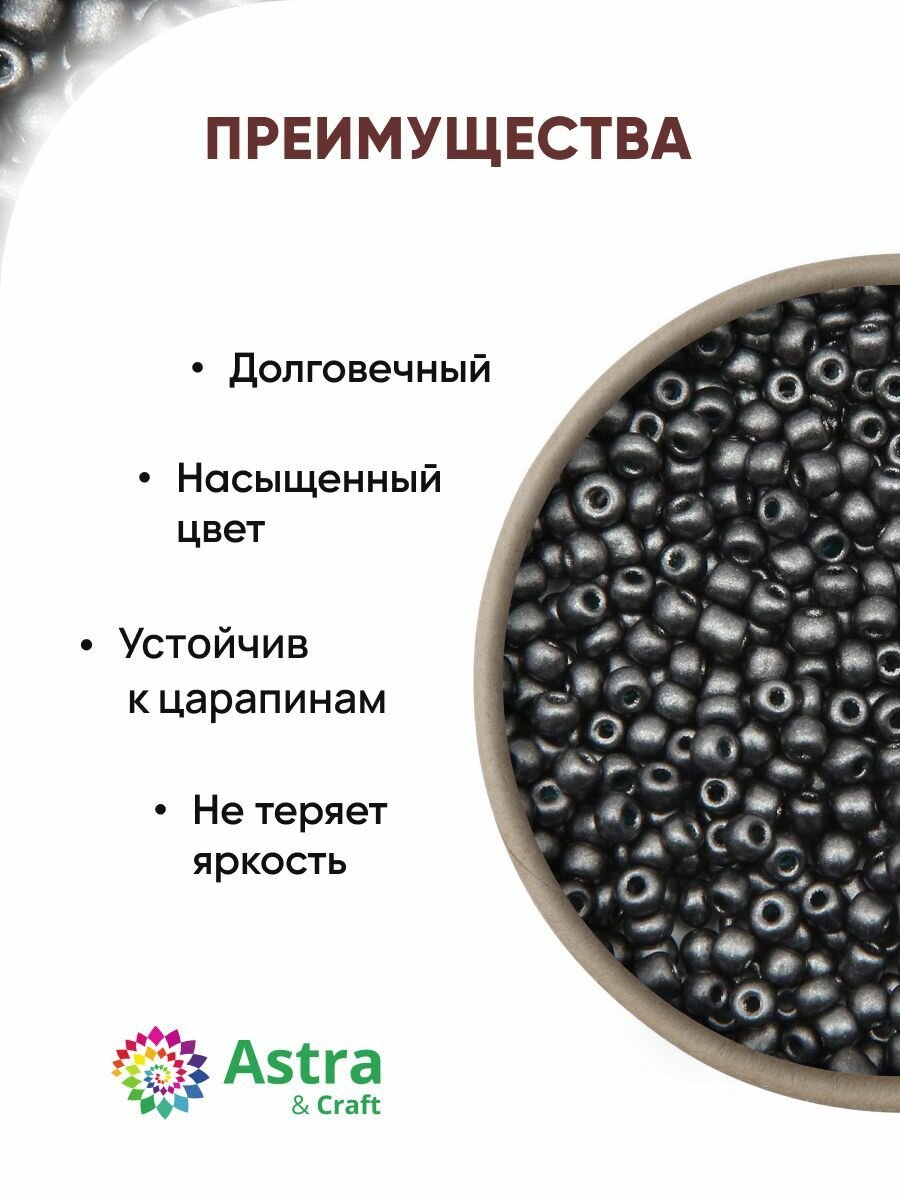 Бисер для плетения 11/0, 20г*10 упак, стекло, Astra&Craft (M924 тёмно-серый, непрозрачный, матовый)