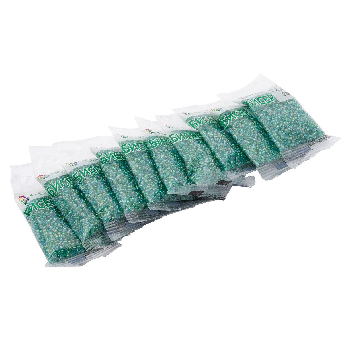 Бисер для плетения 11/0, 20г*10 упак, стекло, Astra&Craft (167B зеленый, прозрачный радужный)