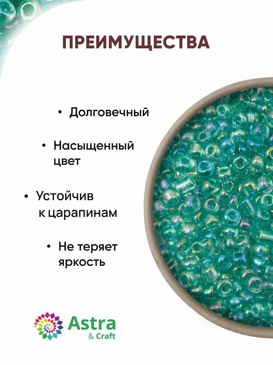 Купить Бисер для плетения 11/0, 20г*10 упак, стекло, Astra&Craft (180А светло-бирюзовый, прозрачный радужный)