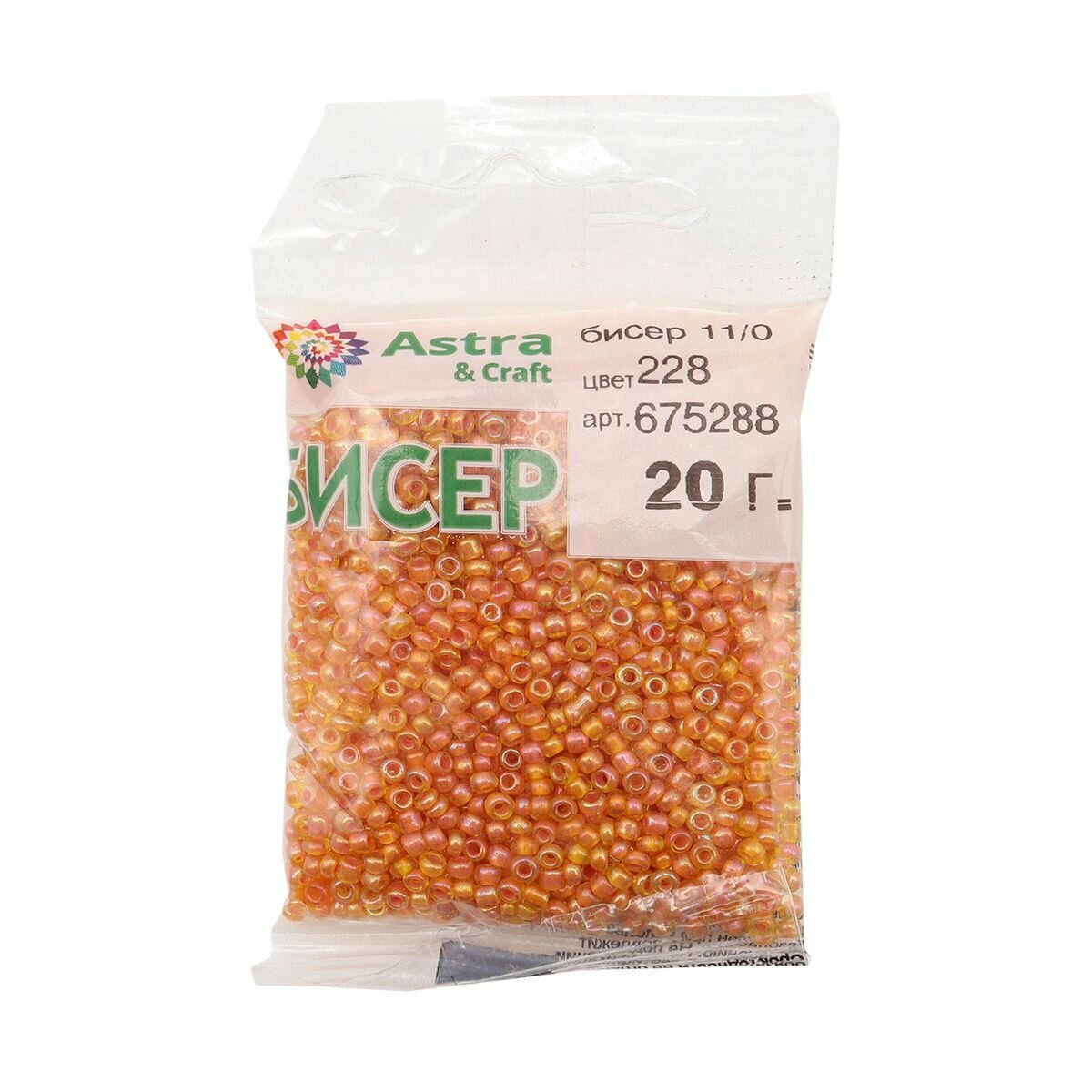 Бисер для плетения 11/0, 20г*10 упак, стекло, Astra&Craft (109 оранжевый, прозрачный глянцевый)