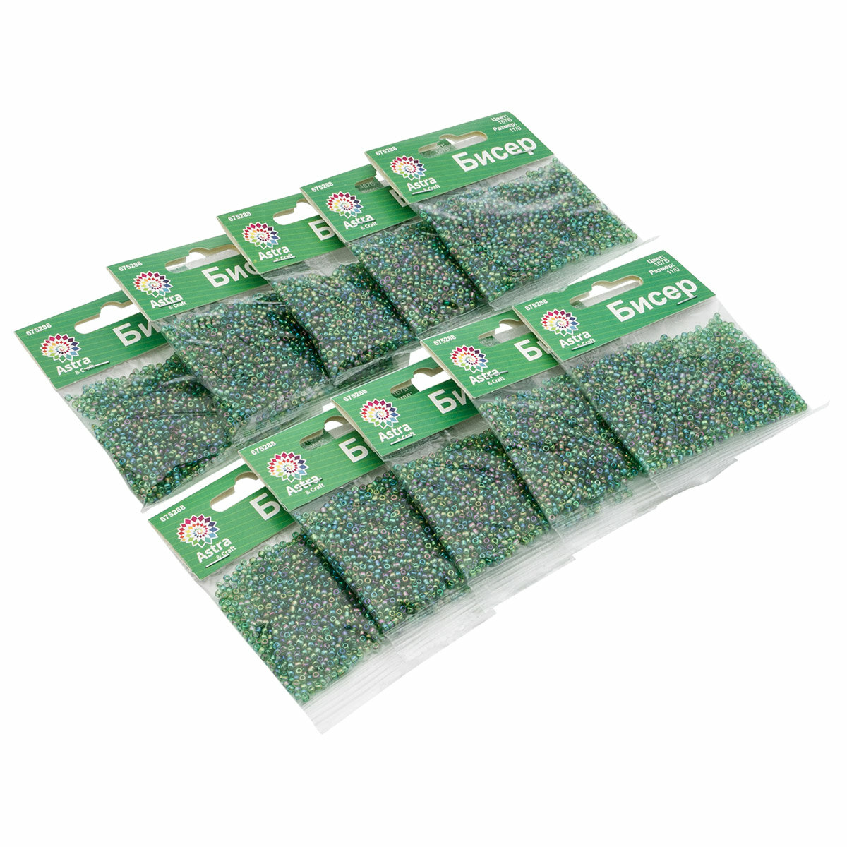 Бисер для плетения 11/0, 20г*10 упак, стекло, Astra&Craft (107В зеленый, прозрачный, глянцевый)