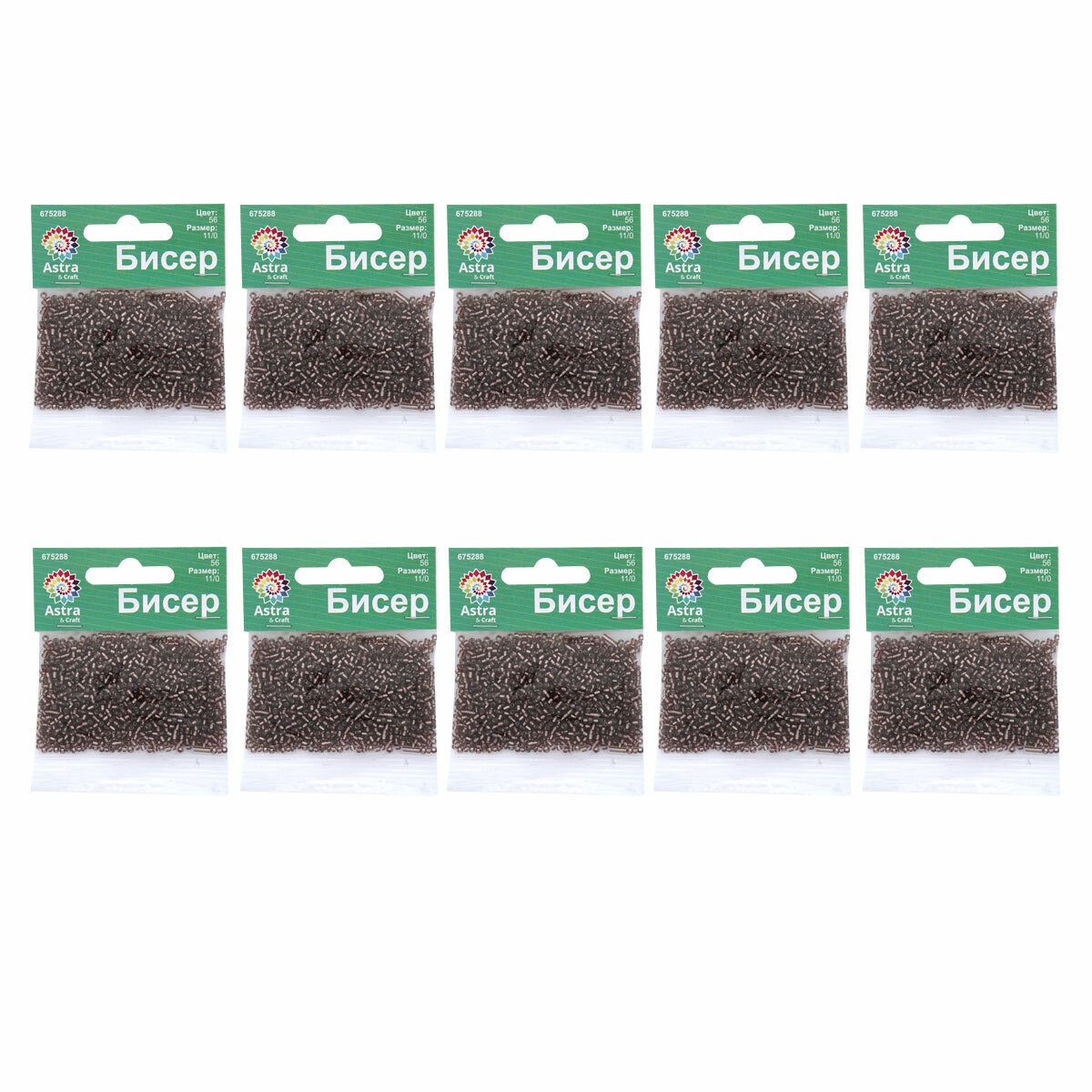 Бисер для плетения 11/0, 20г*10 упак, стекло, Astra&Craft (53 коричневый)
