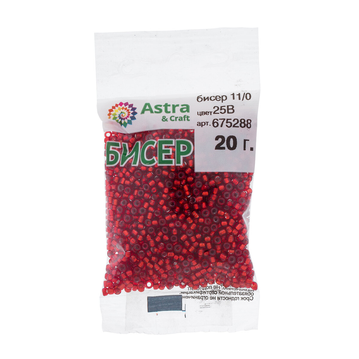 Бисер для плетения 11/0, 20г*10 упак, стекло, Astra&Craft (25 красный, прозрачный с серебристым центром)