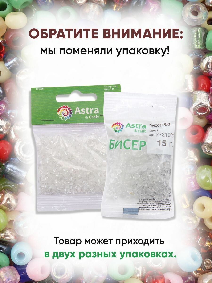 Бисер для плетения 11/0, 20г*10 упак, стекло, Astra&Craft (1100 белый, прозрачный)