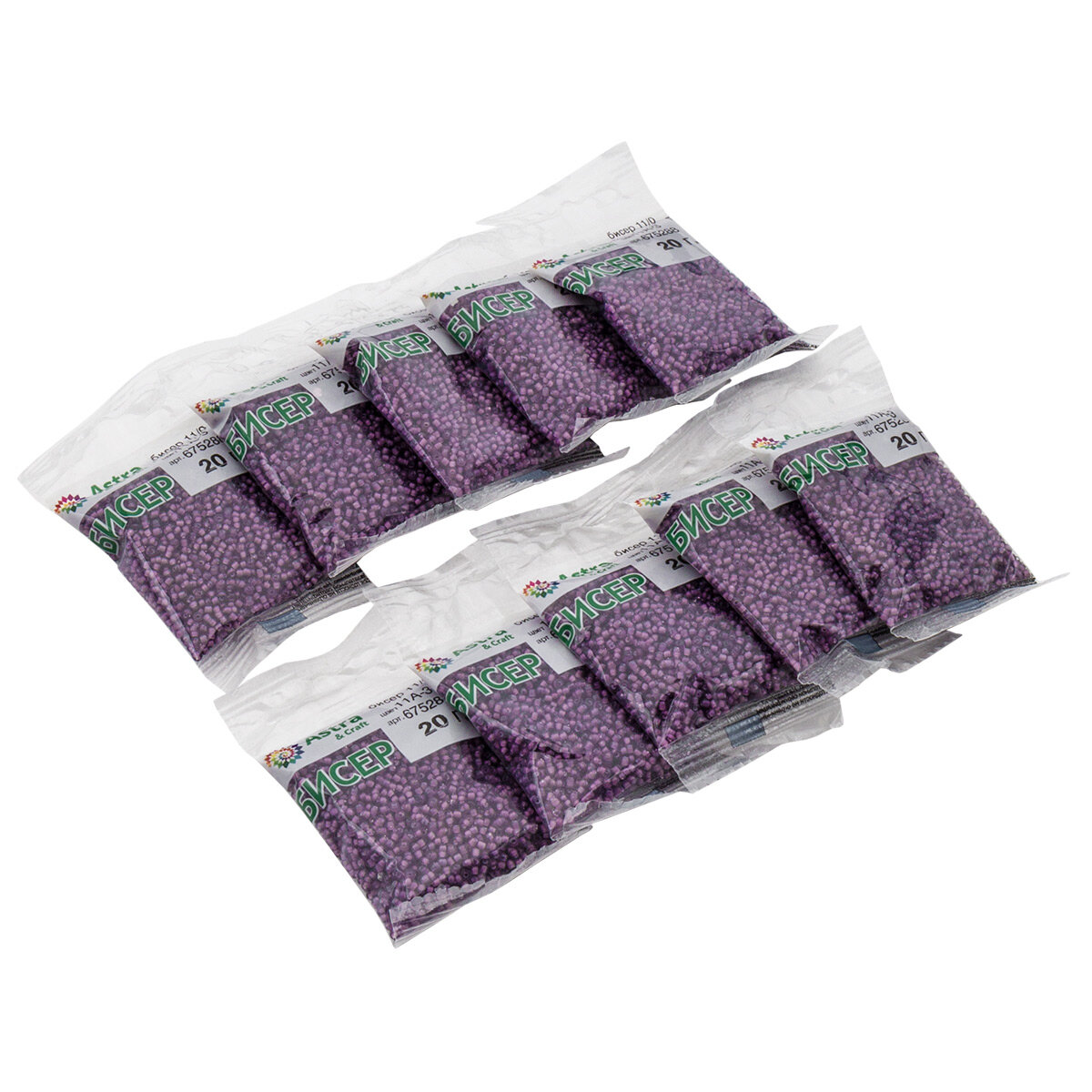 Бисер для плетения 11/0, 20г*10 упак, стекло, Astra&Craft (906 сиреневый, непрозрачный)