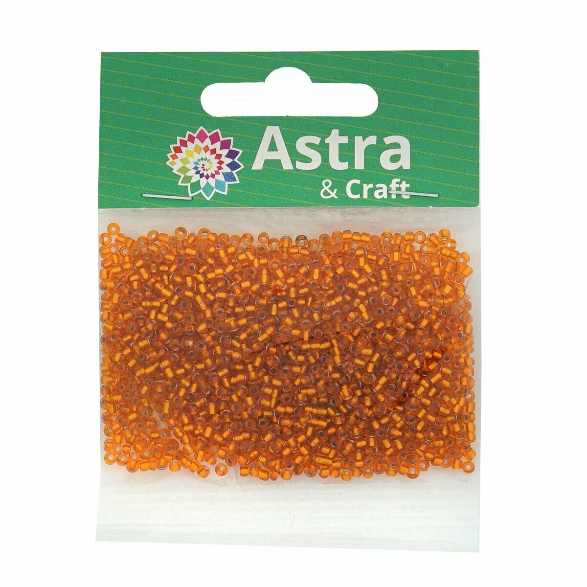 Купить Бисер для плетения 11/0, 20г*10 упак, стекло, Astra&Craft (29B темно-оранжевый, прозрачный с серебристым центромом)