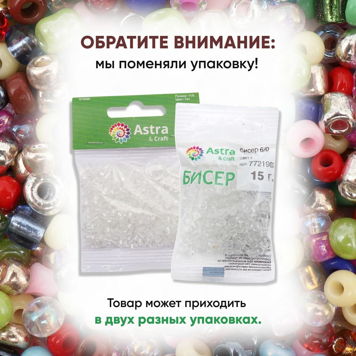 Бисер для плетения 11/0, 20г*10 упак, стекло, Astra&Craft (1 белый, прозрачный)