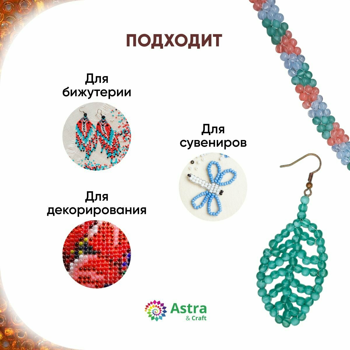 Бисер для плетения 11/0, 20г*10 упак, стекло, Astra&Craft (120А светло-бирюзовый, прозрачный глянцевый)