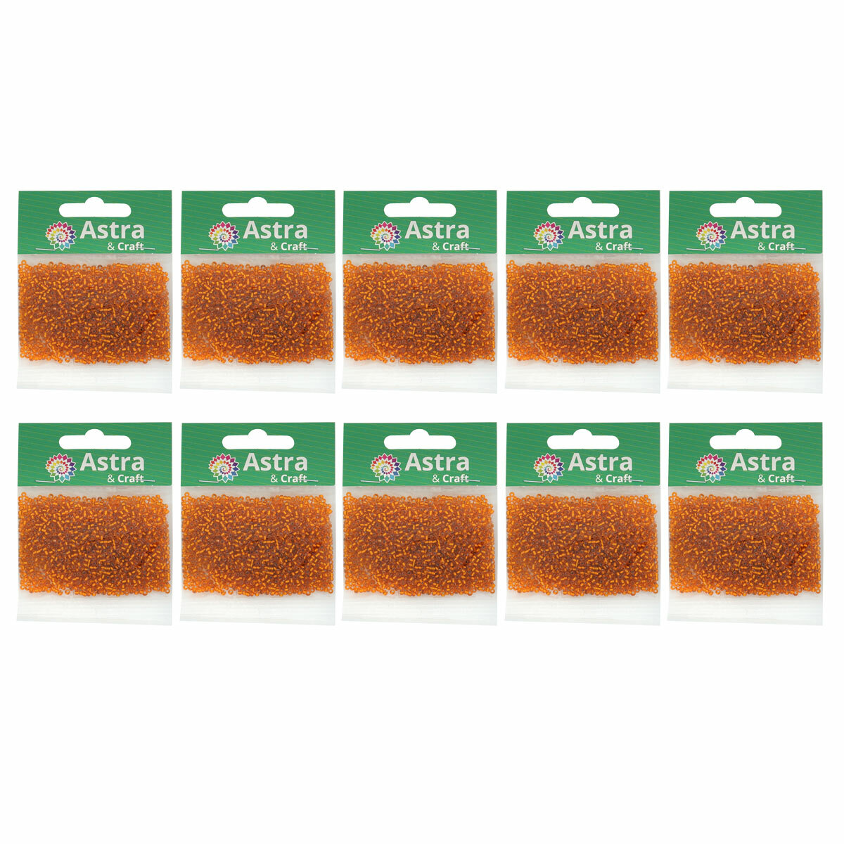 Бисер для плетения 11/0, 20г*10 упак, стекло, Astra&Craft (109 оранжевый, прозрачный глянцевый)