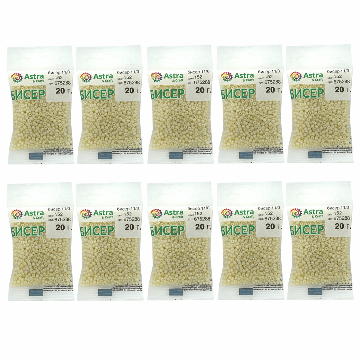 Бисер для плетения 11/0, 20г*10 упак, стекло, Astra&Craft (153 экрю, жемчужный)