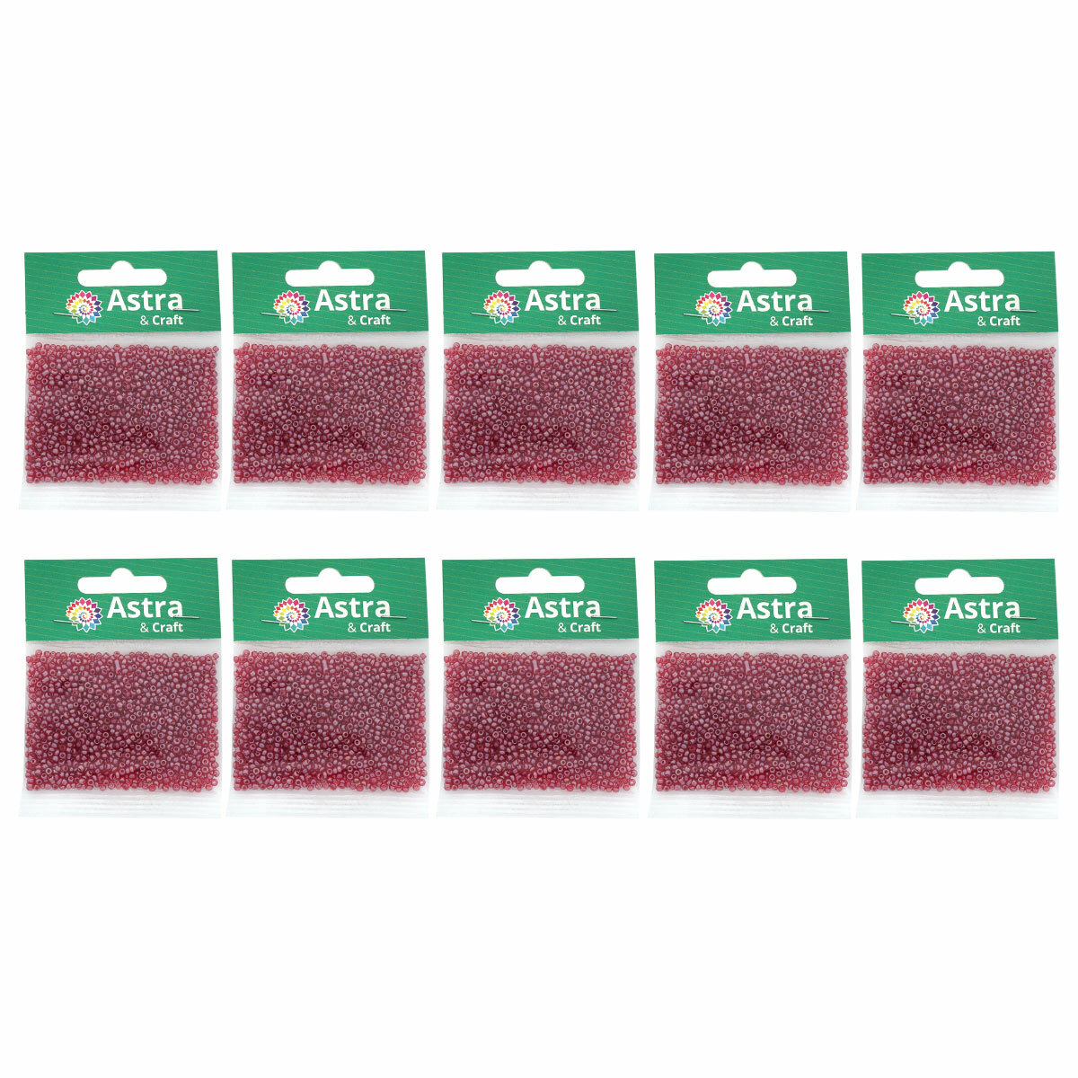 Бисер для плетения 11/0, 20г*10 упак, стекло, Astra&Craft (45 красный, непрозрачный)