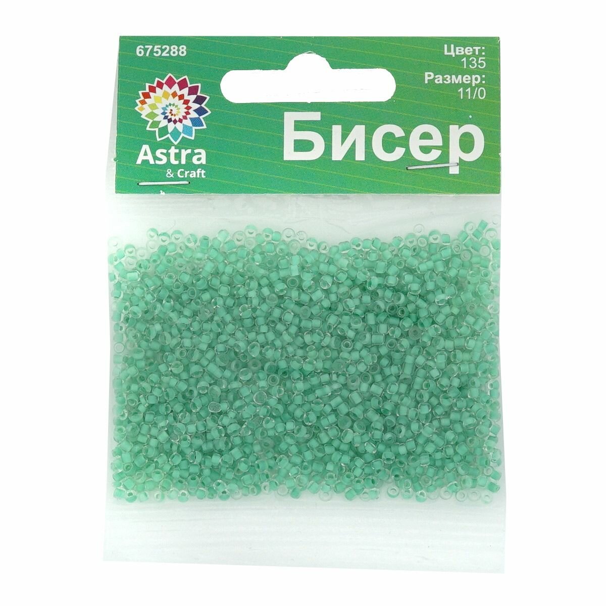 Бисер для плетения 11/0, 20г*10 упак, стекло, Astra&Craft (55А зеленый, прозрачный с серебристым центром)