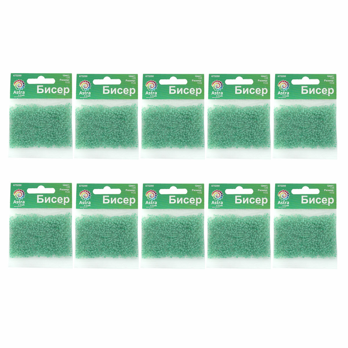 Бисер для плетения 11/0, 20г*10 упак, стекло, Astra&Craft (107В зеленый, прозрачный, глянцевый)