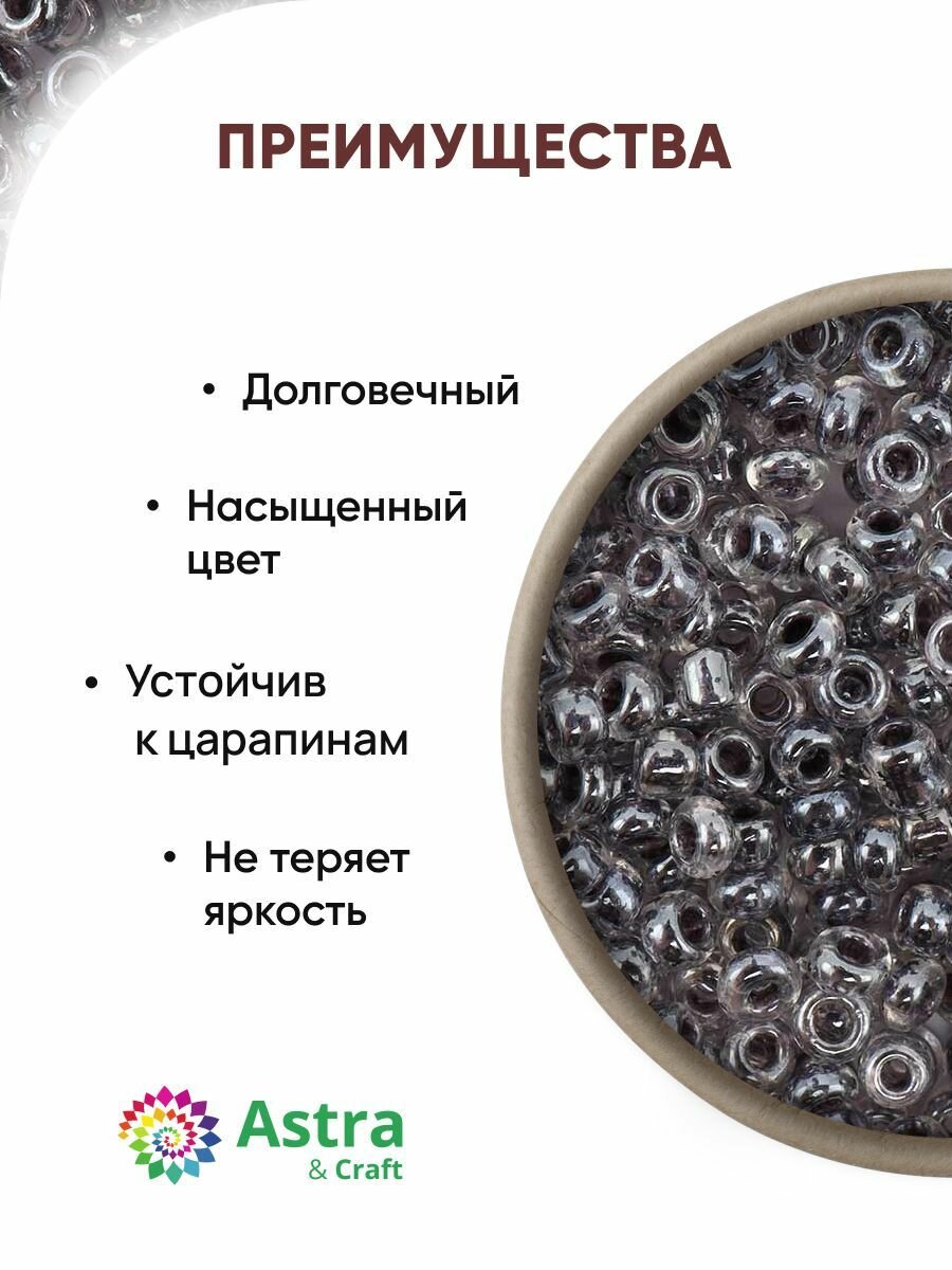 Бисер для плетения 11/0, 20г*10 упак, стекло, Astra&Craft (112 серый, прозрачный, глянцевый)