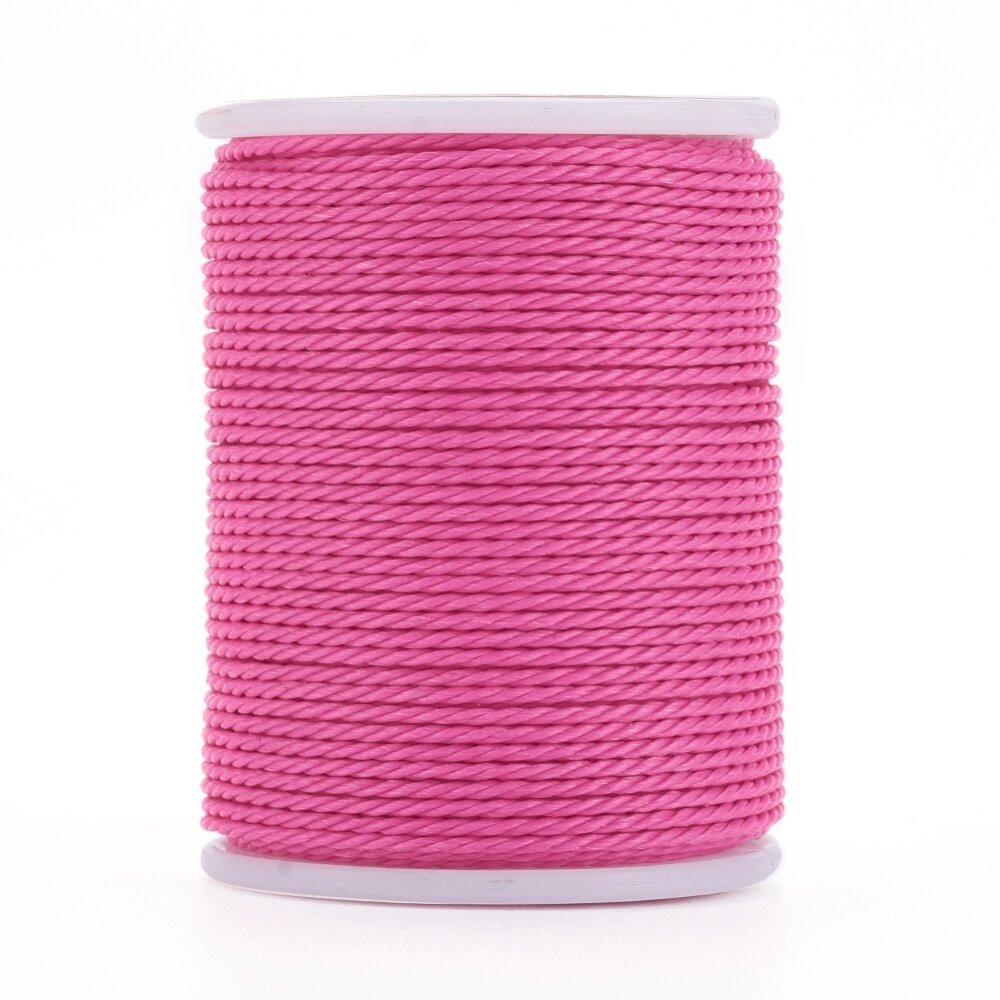 Купить Шнур синтетический вощеный, полиэстеровый, около 1мм, витой, ярко-розовый, 10 метров, катушка