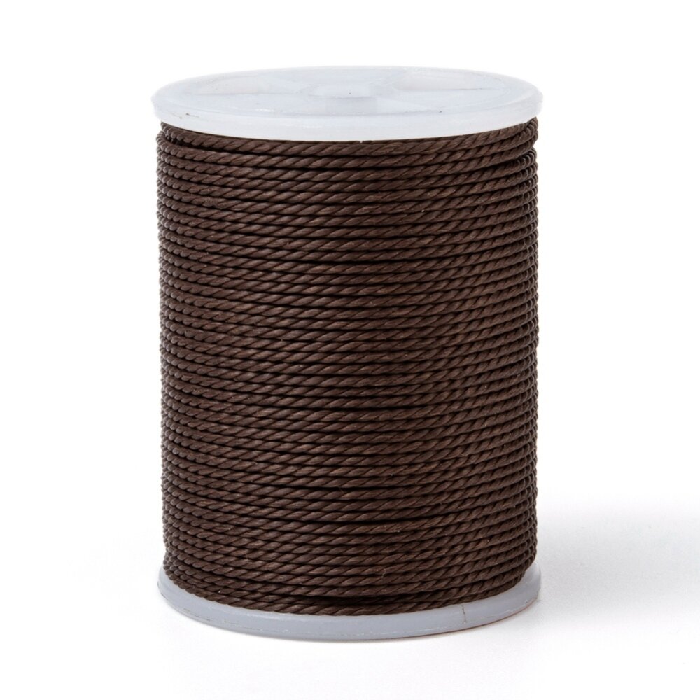 Шнур синтетический вощеный, полиэстеровый, около 1мм, витой, темно-коричневый, 10 метров, катушка