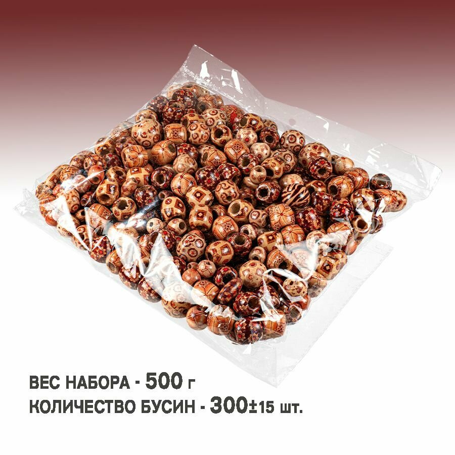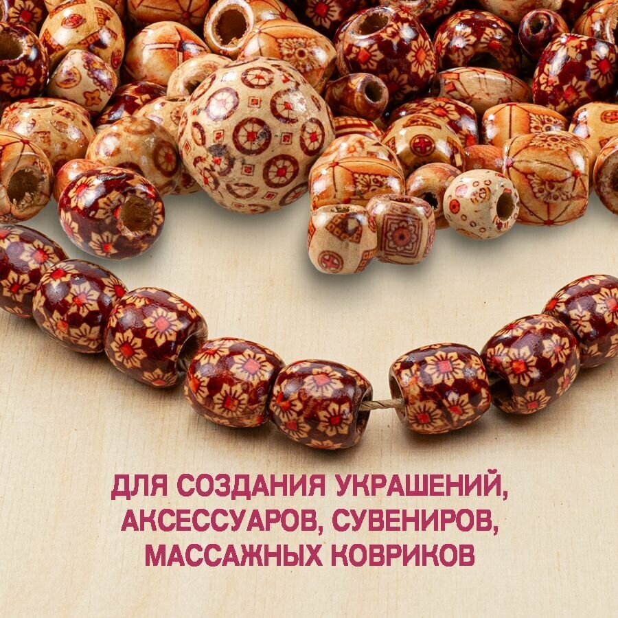 Набор деревянных бусин с росписью, размер от 10 до 30 мм, 300 штук, ассорти 500 г, интересное: