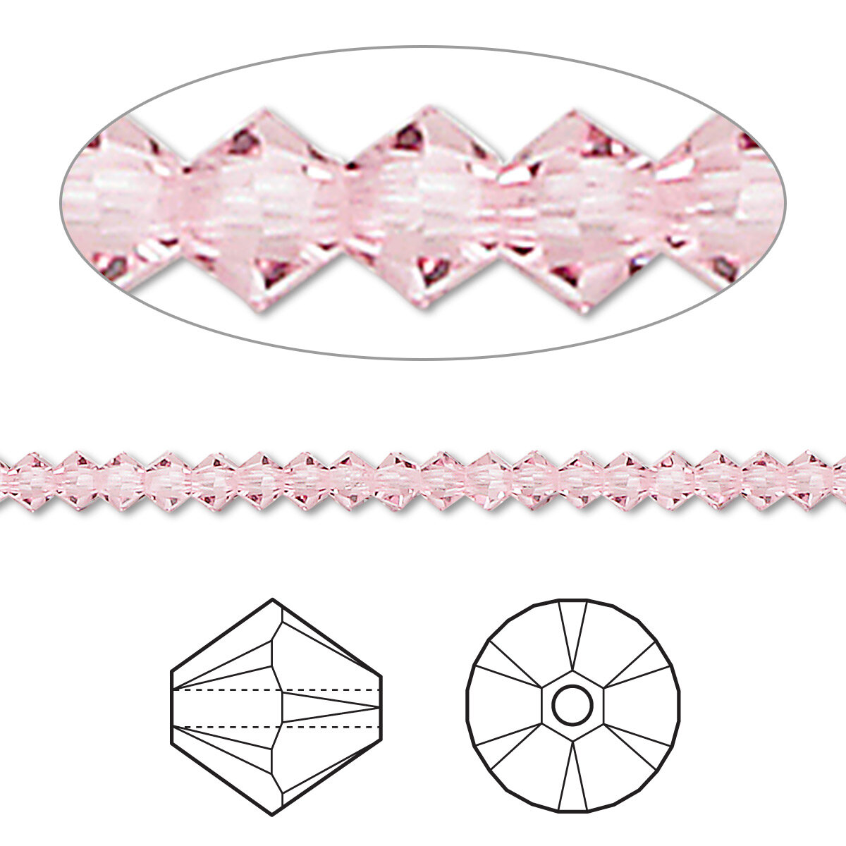 СохранитьБусина Swarovski, 3мм, Биконус (#5328), светлая роза (цвет 223), 10 шт. интересное: