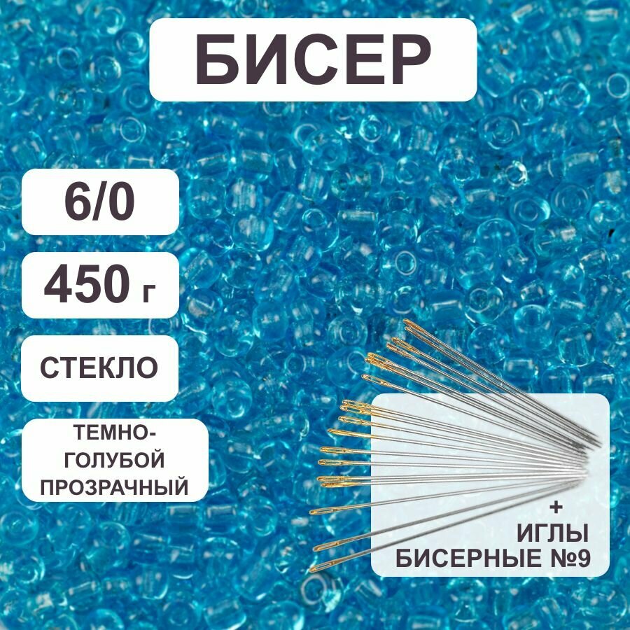 Купить Бисер 6/0 прозрачный светло-синий №6, 450 гр, некалиброванный