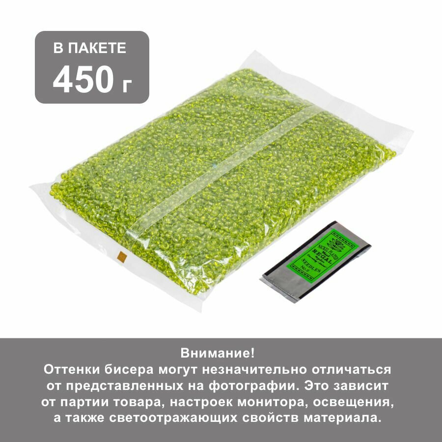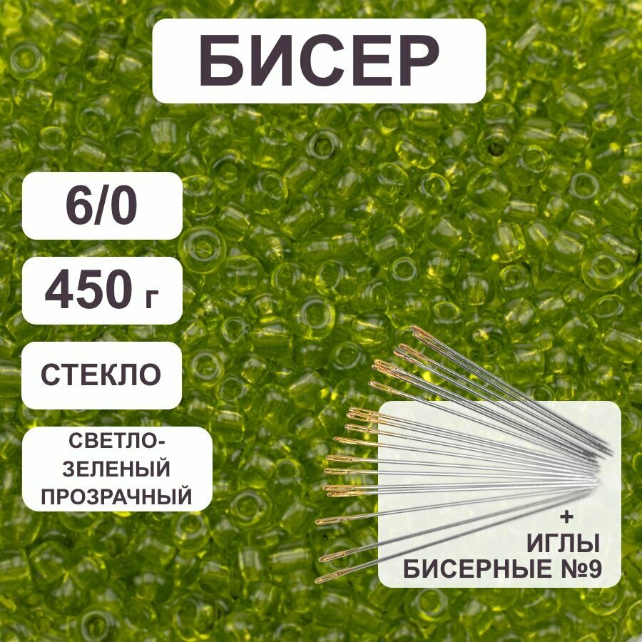 Купить Бисер 6/0 прозрачный светло-зеленый №4, 450 гр, некалиброванный