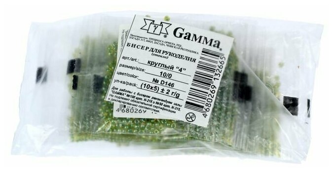 Ниже Вы можете прочитать отзывы на Бисер Чехия "GAMMA" круглый 10/0 2.3 мм 5 г D146 зелёный ( 81014 ), ознакомится с подробными характеристиками, посмотреть интересные обзоры и фотографии на Бисер Чехия "GAMMA" круглый 10/0 2.3 мм 5 г D146 зелёный ( 81014 ).