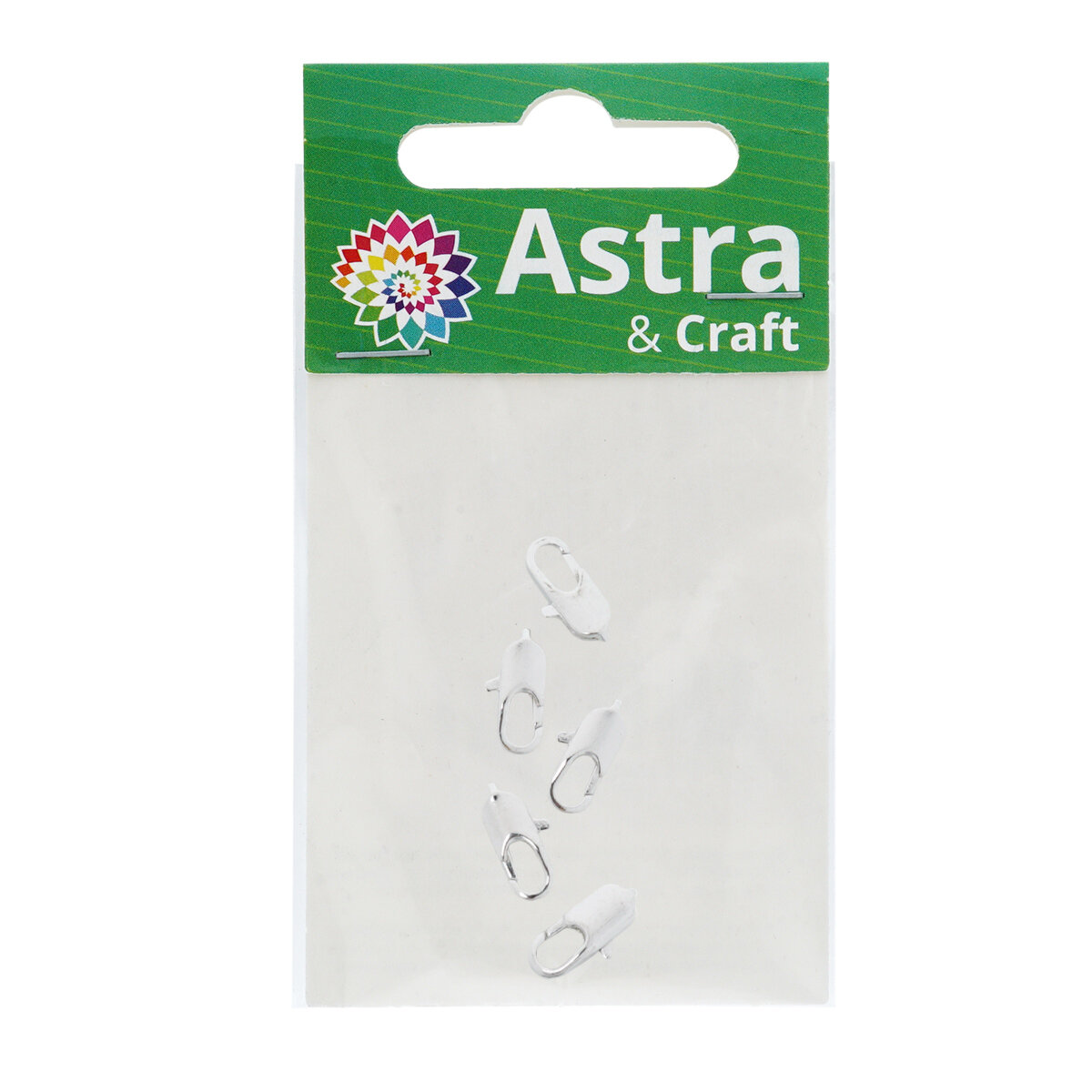 4AR236 Замок для бус карабин, 10мм, 5шт/упак, Астра (Никель)