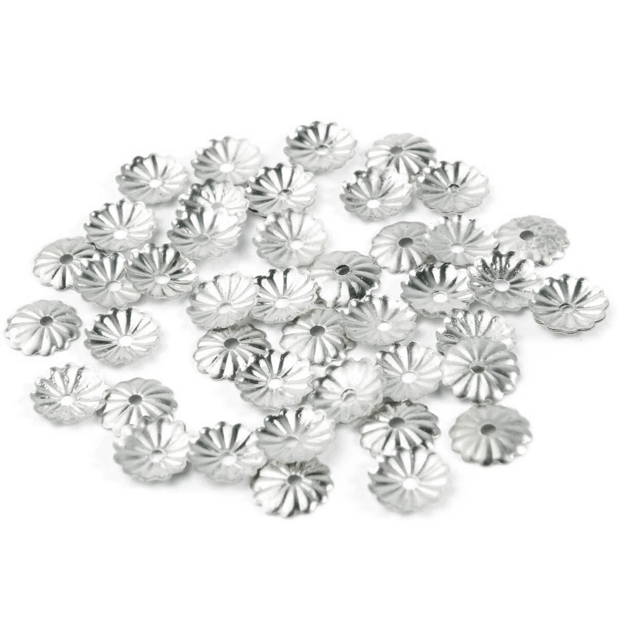 Купить Шапочки для бусин декоративные 7 мм (± 1 мм), 50 шт, металл, Astra&Craft (серебро)