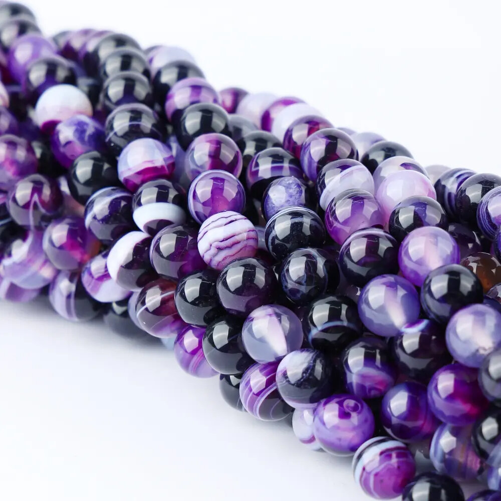 KamenOpt / Агат бусины 10 мм, на нитке 38 см, цвет: Фиолетовый, для рукоделия