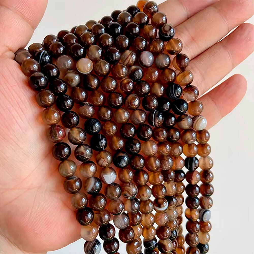 KamenOpt / Агат натуральный камень, бусины 8 мм, на нитке 38 см, цвет: Коричневый