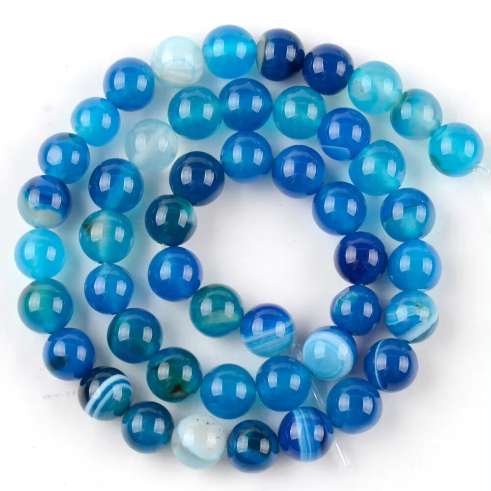 KamenOpt / Агат бусины 10 мм, на нитке 38 см, цвет: Синий, для рукоделия
