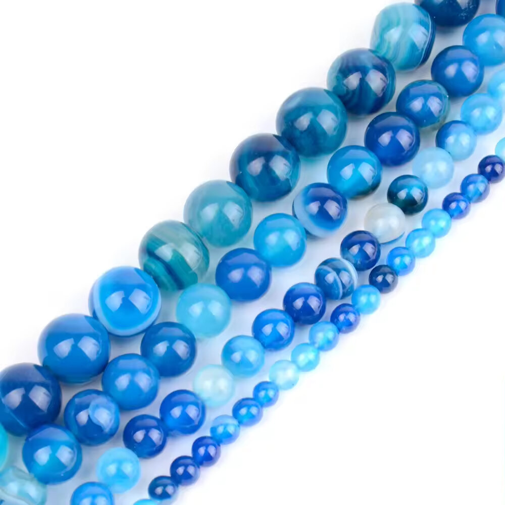 KamenOpt / Агат бусины 10 мм, на нитке 38 см, цвет: Синий, для рукоделия