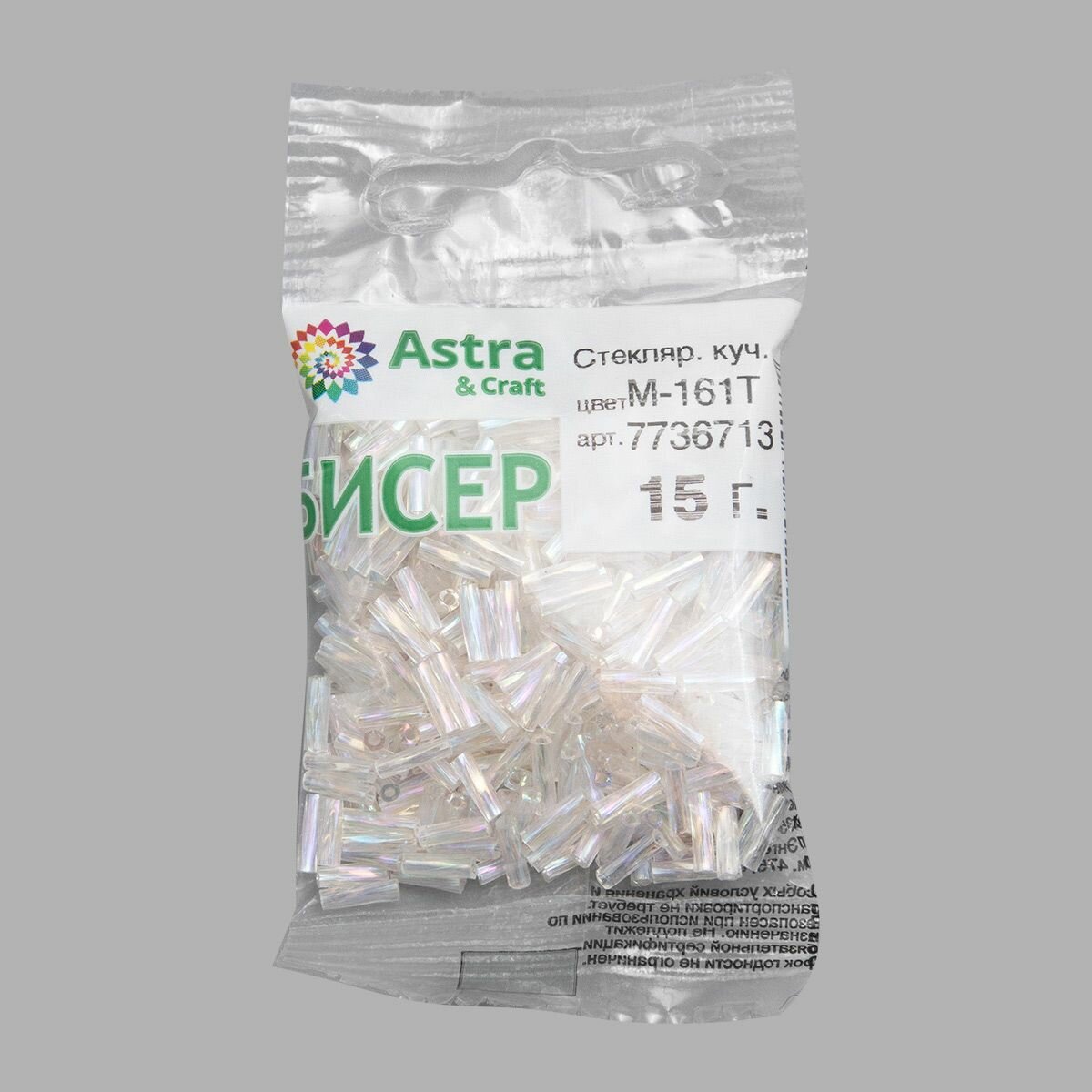 Купить Бисер стеклярус крученый Astra&Craft 5мм, 15г (М-161Т белый, прозрачный), 10 упак