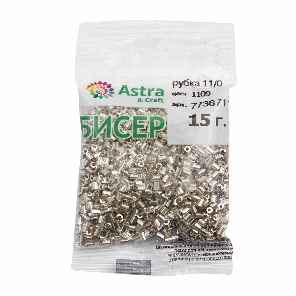 Купить Бисер рубка Astra&Craft 11/0, 15г (1109 серебро, глянцевое покрытие), 10 упак