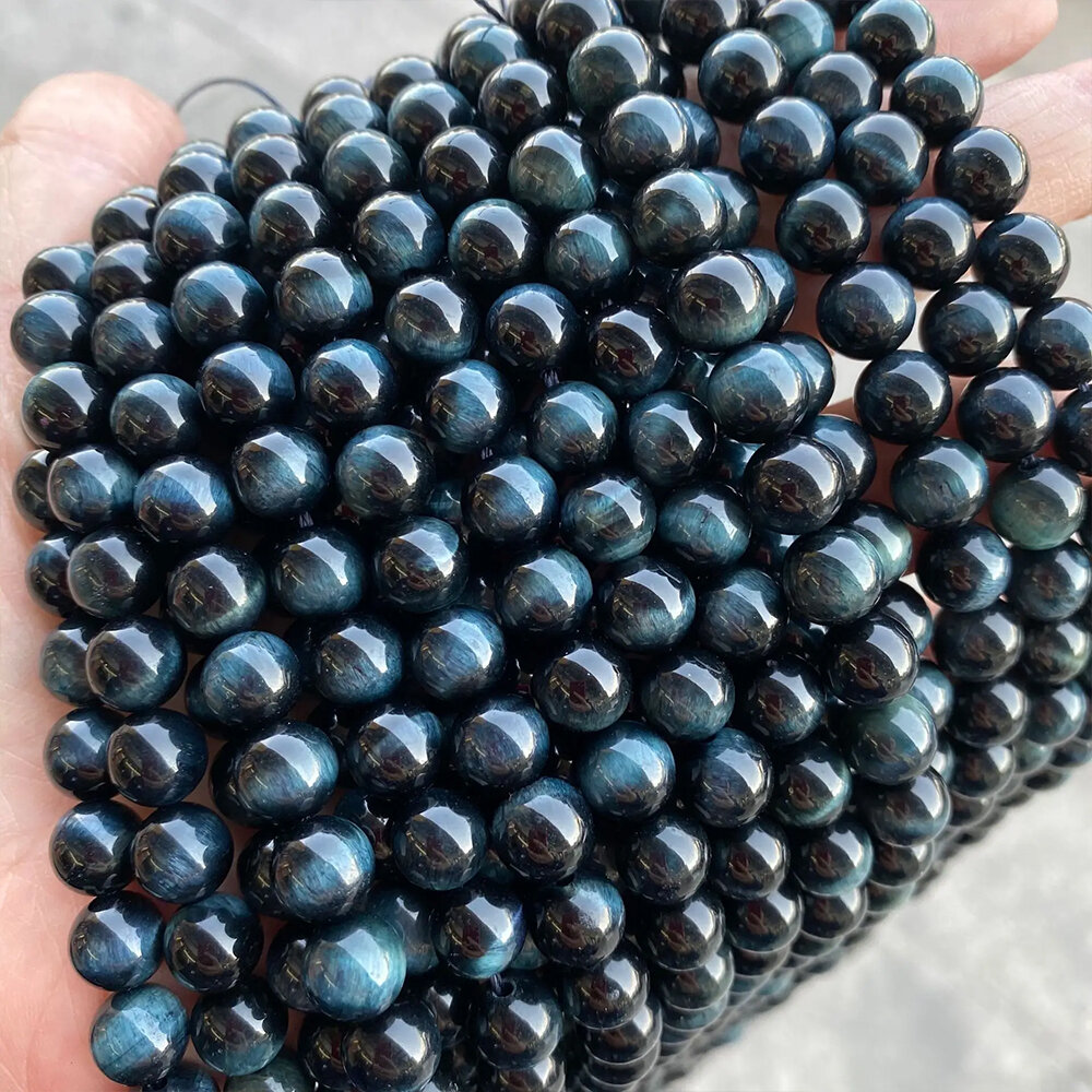 Тигровый глаз 6 мм, бусины для рукоделия, на нитке 38 см около 62 шт, цвет: Синий