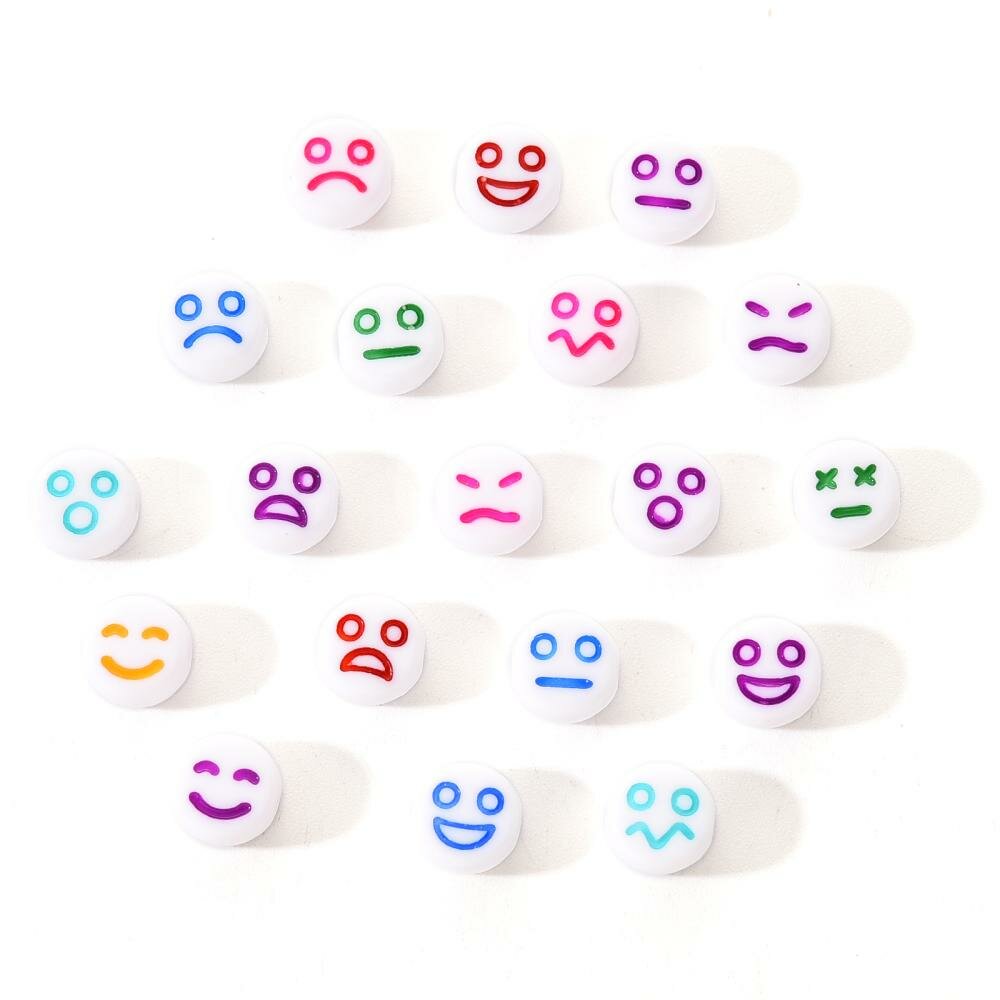 Купить Бусины акриловые, 7х4мм, смайлики, белые/микс цветов, около 200 шт.