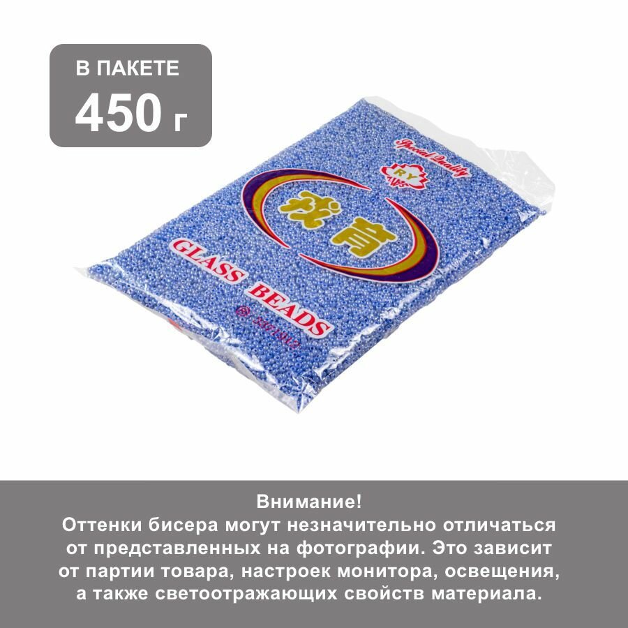 Бисер 12/0 голубой перламутр №143, 450 гр, некалиброванный