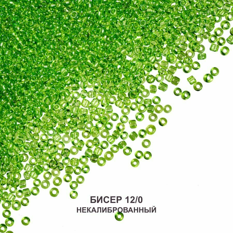 Бисер 12/0 св. зеленый прозрачный №4, 450 гр, некалиброванный